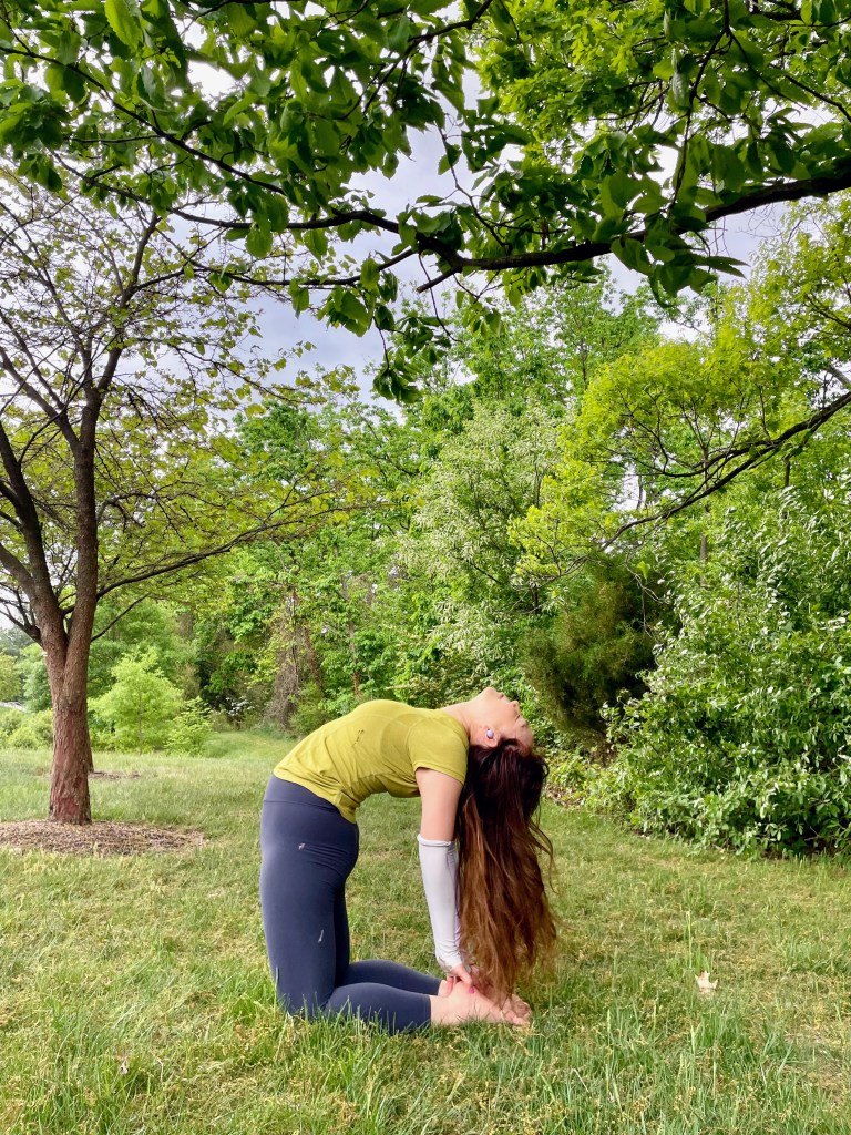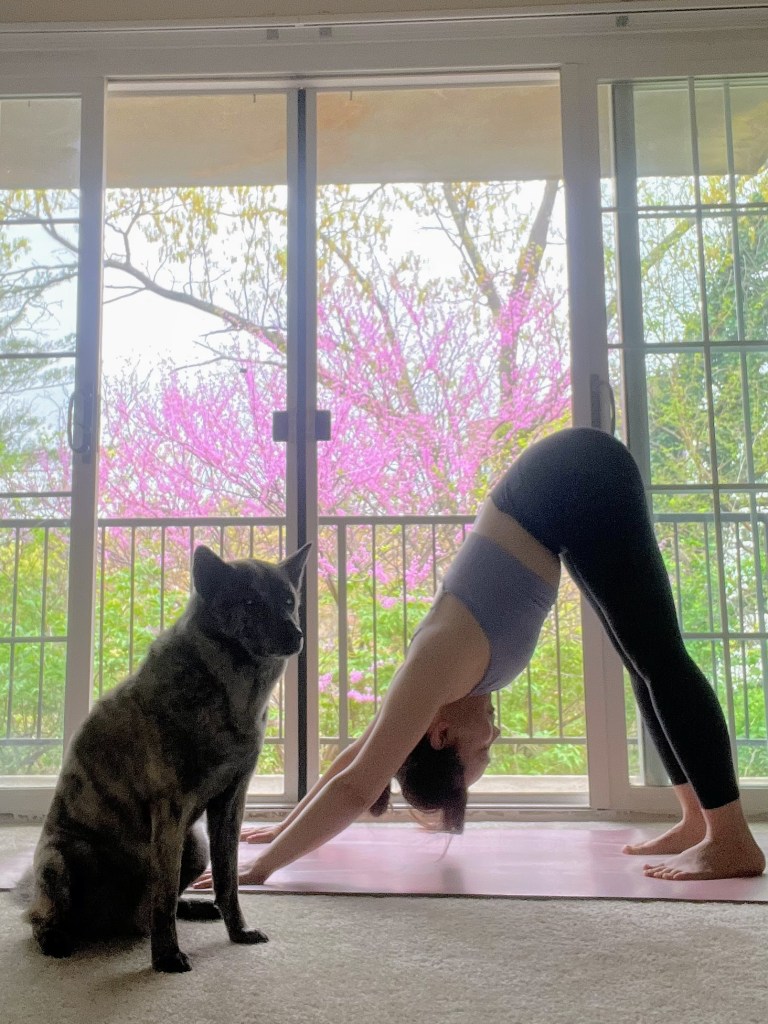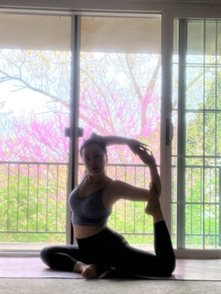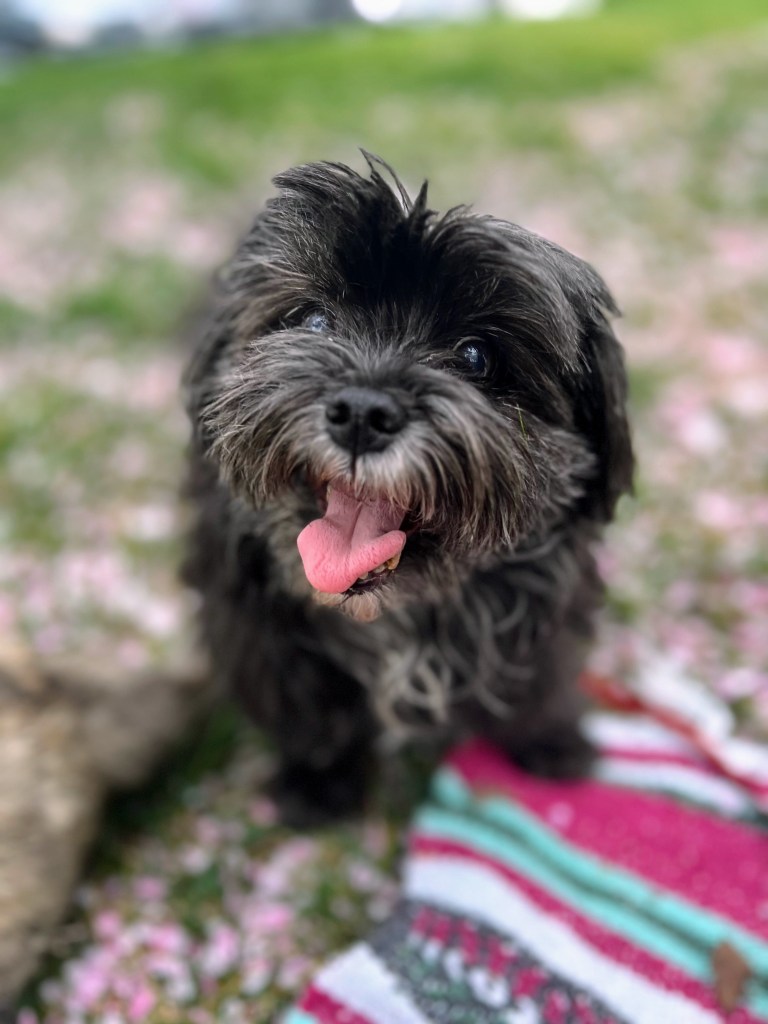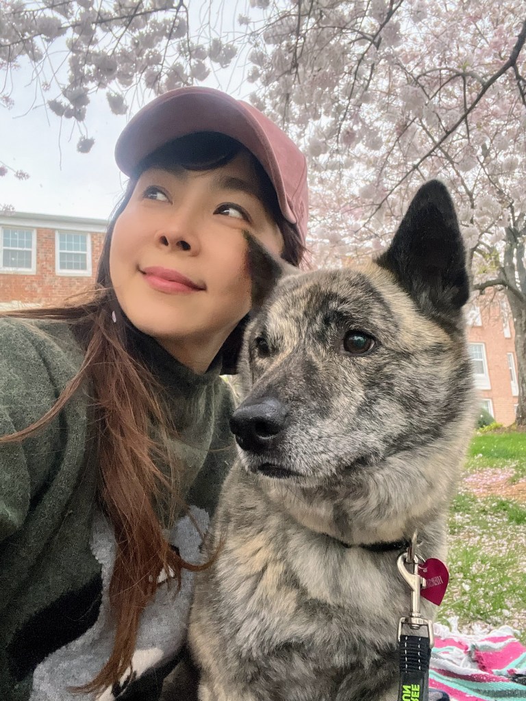 Sometimes we go to our front yard. It is full of cherry blossoms.